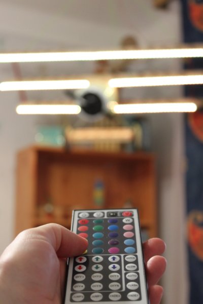 A váz már egy ideje várta hogy újra foglalkozzanak vele. Nem is kellett sok darabját összerakni a mostani állapot eléréséhez, éppen csak a borítás /szín hiányzik róla, (bár nekem így natúron jobban tetszik) 😉 Egy kis csavar, hogy ne legyen egyszerű ez a projekt sem 😛 Férjecske kitalálta, hogy egy led szalaggal hangulat fény forrássá alakítja át. Ehhez nem is kellett más ( most itt csak tolmácsolni tudom a szakszavakat és technikai kütyük nevét) mint egy RGB /színes/ led szalag. Az összeszerelés folyamata itt sem lett megörökítve, teljes mértékben rábíztam a kivitelezést a kreatív páromra. Itt már azért kellett forrasztani a feldarabolt led szalagot, szakszóval: be kellett kötni, hogy újra egységben tudjon működni.